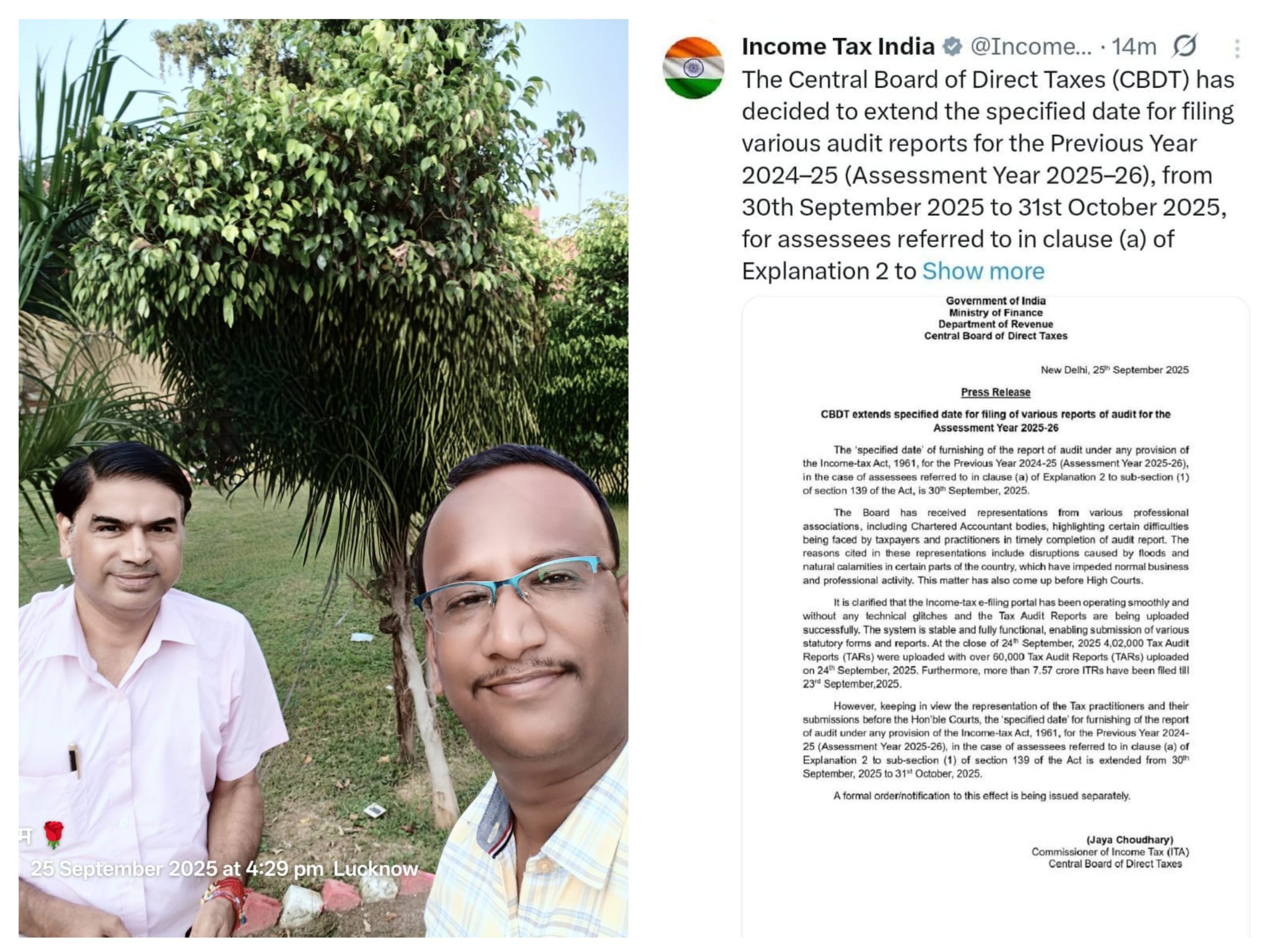 इस वर्ष करदाताओं के लिए आयकर रिटर्न दाखिल करने की अंतिम तिथि 16 सितम्बर 2025 निर्धारित की गई थी। इसके कारण प्रोफेशनल्स को ऑडिट रिपोर्ट तैयार करने हेतु पर्याप्त समय उपलब्ध नहीं हो सका। साथ ही, इस बार आयकर से संबंधित अनेक फॉर्म भी देरी से जारी किए गए। परिणामस्वरूप करदाताओं एवं प्रोफेशनल्स को अपने कार्य समय पर पूर्ण करने में कठिनाई हुई।