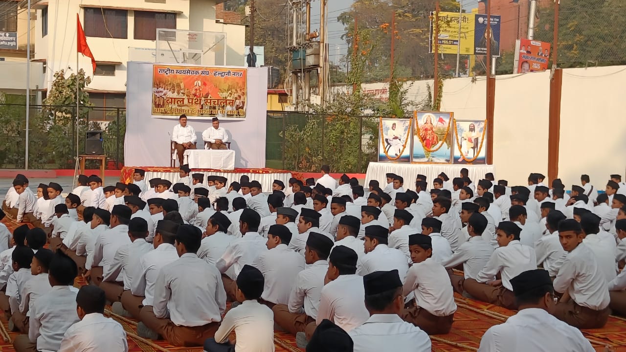 उत्तराखंड— राष्ट्रीय स्वयंसेवक संघ हल्द्वानी नगर के बाल विद्यार्थियों का पथ संचलन एमबीपीजी कॉलेज से तिकोनिया चौराहा होते हुए वापस एमबीपीजी तक निकला गया ।