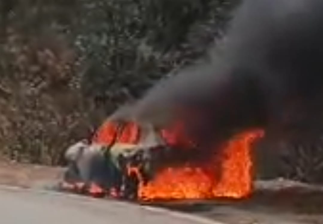 नैनीताल—-  उत्तराखण्ड में नैनीताल के कैची धाम घूमने जा रहे पर्यटकों के वाहन में अचानक आग लग गई। गनीमत है कि उस समय वाहन के भीतर कोई नहीं था जिससे जन हानी बच गई।