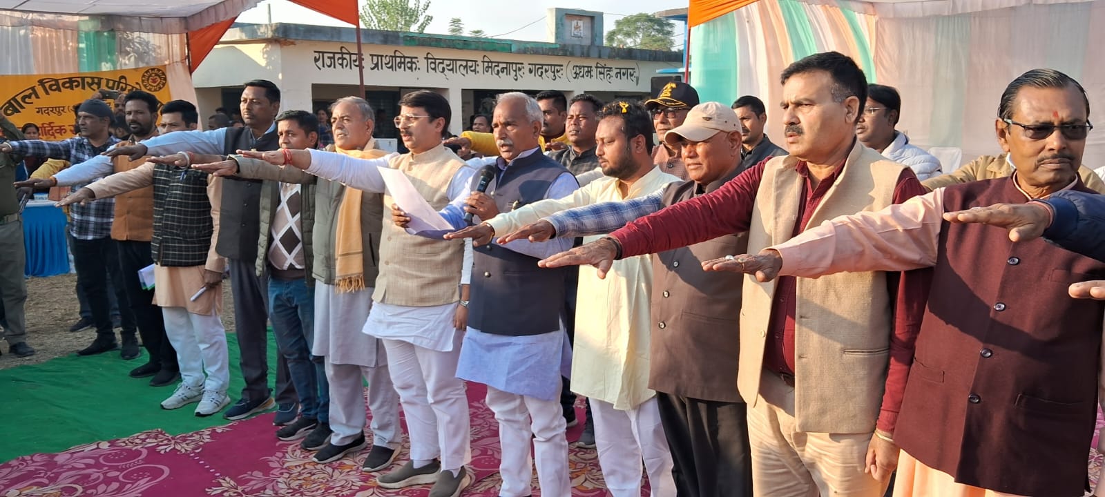 दिनेशपुर- विकसित भारत संकल्प यात्रा के अंतर्गत राजकीय उच्चतर माध्यमिक विद्यालय मिदनापुर में विकसित भारत संकल्प यात्रा कार्यक्रम का आयोजन किया गया। जिसका स्थानीय विधायक अरविंद पांडे, जिलाधिकारी उदयराज सिंह, सीडीओ विशाल मिश्रा, बीजेपी जिलाध्यक्ष गुंजन सुखीजा ने संयुक्त रूप से दीप जलाकर शुभारंभ किया। कार्यक्रम में विधायक अरविंद पांडे ने अधिकारियों, गणमान्य नागरिकों तथा उपस्थित जनसमूह को विकसित भारत की शपथ दिलाई गई।