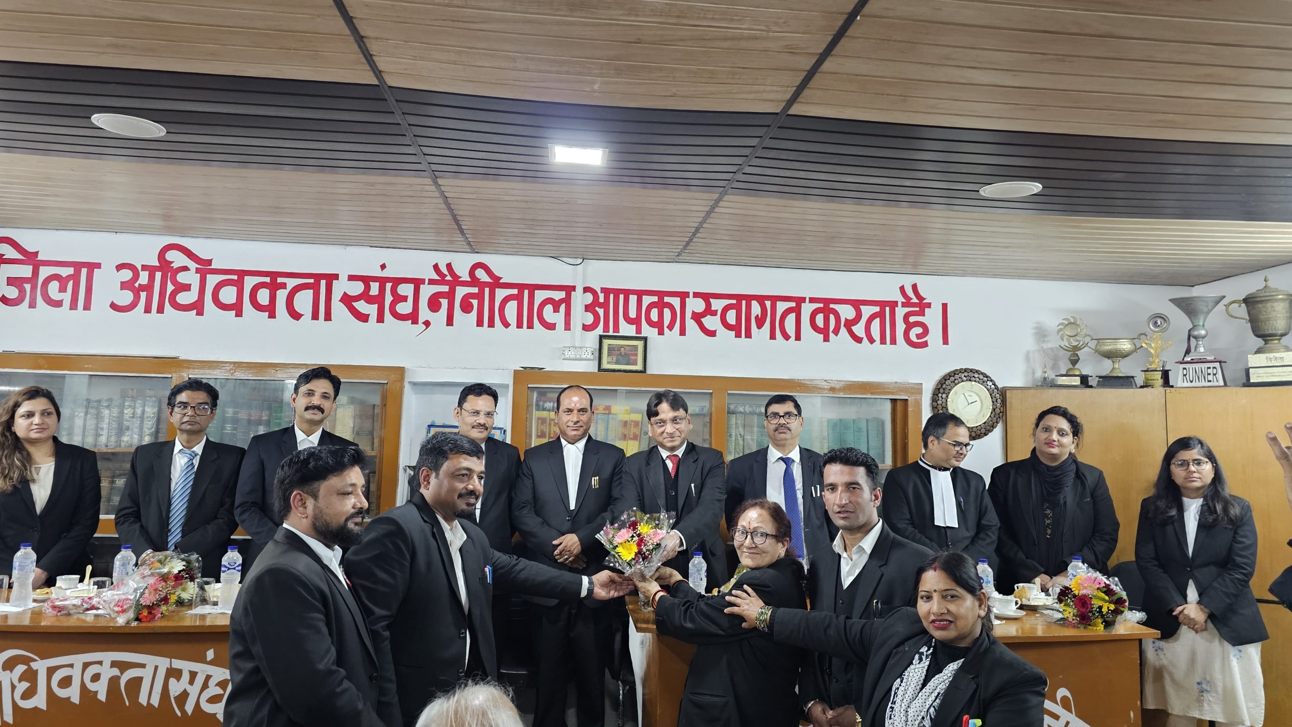 इस दौरान सीनियर सिविल जज हर्ष यादव , रुचिका गोयल, सी जे एम रवि प्रकाश शुक्ल, ए सी जे एम नेहा कुशवाहा सहित उपाध्यक्ष शंकर चौहान, उपसचिव दीपक दत्त पांडेय, वरिष्ठ अधिवक्ता प्रीति साह ,मंजू कोटलिया ,मान सिंह बिष्ट, हरिशंकर कंसल, मनीष मोहन जोशी, नीरज साह, अरुण बिष्ट, ओंकार गोस्वामी, राजेंद्र कुमार पाठक ,राजेश चंदोला, सुशील कुमार शर्मा, पंकज बिष्ट, राम सिंह रौतेला, प्रदीप परगाई, संजय सुयाल, भरत भट्ट ,भानुप्रताप मौनी ,अनिल बिष्ट ,अशोक मौलखी, पंकज कुमार, गौरव कुमार, शशांक कुमार ,तारा आर्या ,नीलेश भट्ट, सुभाष जोशी, शिवांशु जोशी ,मुकेश कुमार ,प्रमोद तिवारी ,उमेश कांडपाल ,निर्मल कुमार, गौरव भट्ट ,मोहम्मद खुर्शीद, दीपक कुमार दानू ,यशपाल आर्य ,हेमा शर्मा ,पूजा साह ,किरन आर्या ,संध्या, आकांक्षा एवं अन्य अधिवक्ता मौजूद रहे।