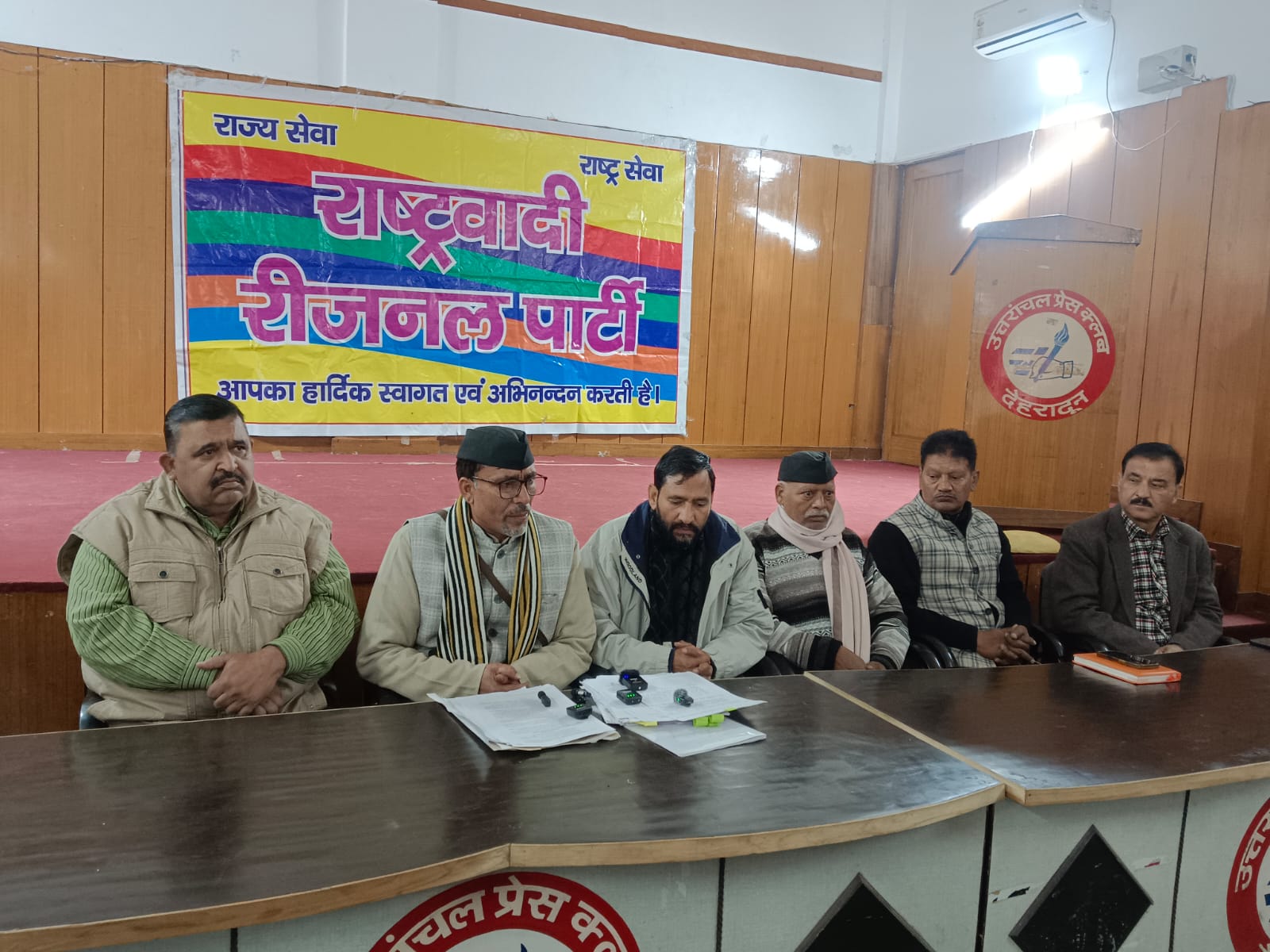 प्रेस वार्ता में राष्ट्रवादी रीजनल पार्टी के राष्ट्रीय अध्यक्ष शिवप्रसाद सेमवाल , प्रदेश अध्यक्ष सुलोचना ईष्टवाल, लोकायुक्त अभियान के संयोजक परमानंद बलोदी,व सुमन राम बडोनी, वन एवं पर्यावरण प्रकोष्ठ के प्रदेश अध्यक्ष योगेश ईष्टवाल, आरटीआई व मानवाधिकार प्रकोष्ठ के प्रदेश अध्यक्ष भूपेंद्र कुमार तथा देहरादून जिला अध्यक्ष नवीन पंत आदि लोग मौजूद थे।