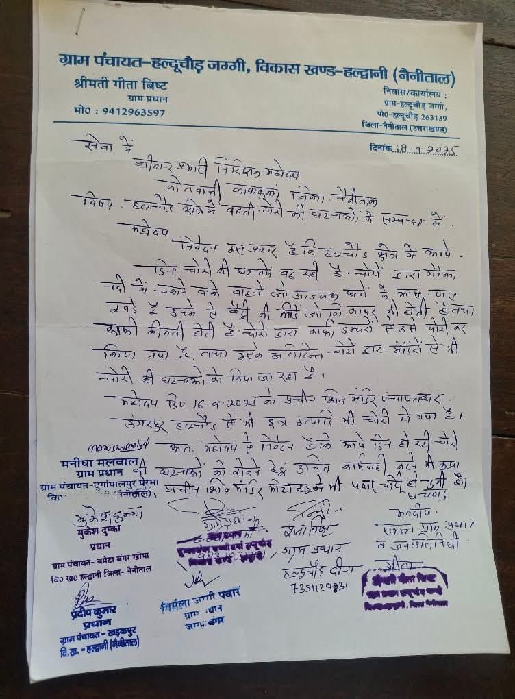 ग्राम प्रधानों ने साफ चेतावनी दी है कि यदि क्षेत्र में जल्द ही चोरी और अपराध पर अंकुश नहीं लगाया गया तो वे सामूहिक आंदोलन शुरू करने को मजबूर होंगे।