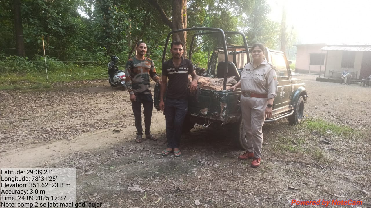 लकड़ी तस्कर के कब्जे से एक वाहन और लकड़ी की दो डाट सहित गिरफ्तार कर माननीय न्यायालय में पेश किया गया जहां से उसे जेल भेज दिया गया