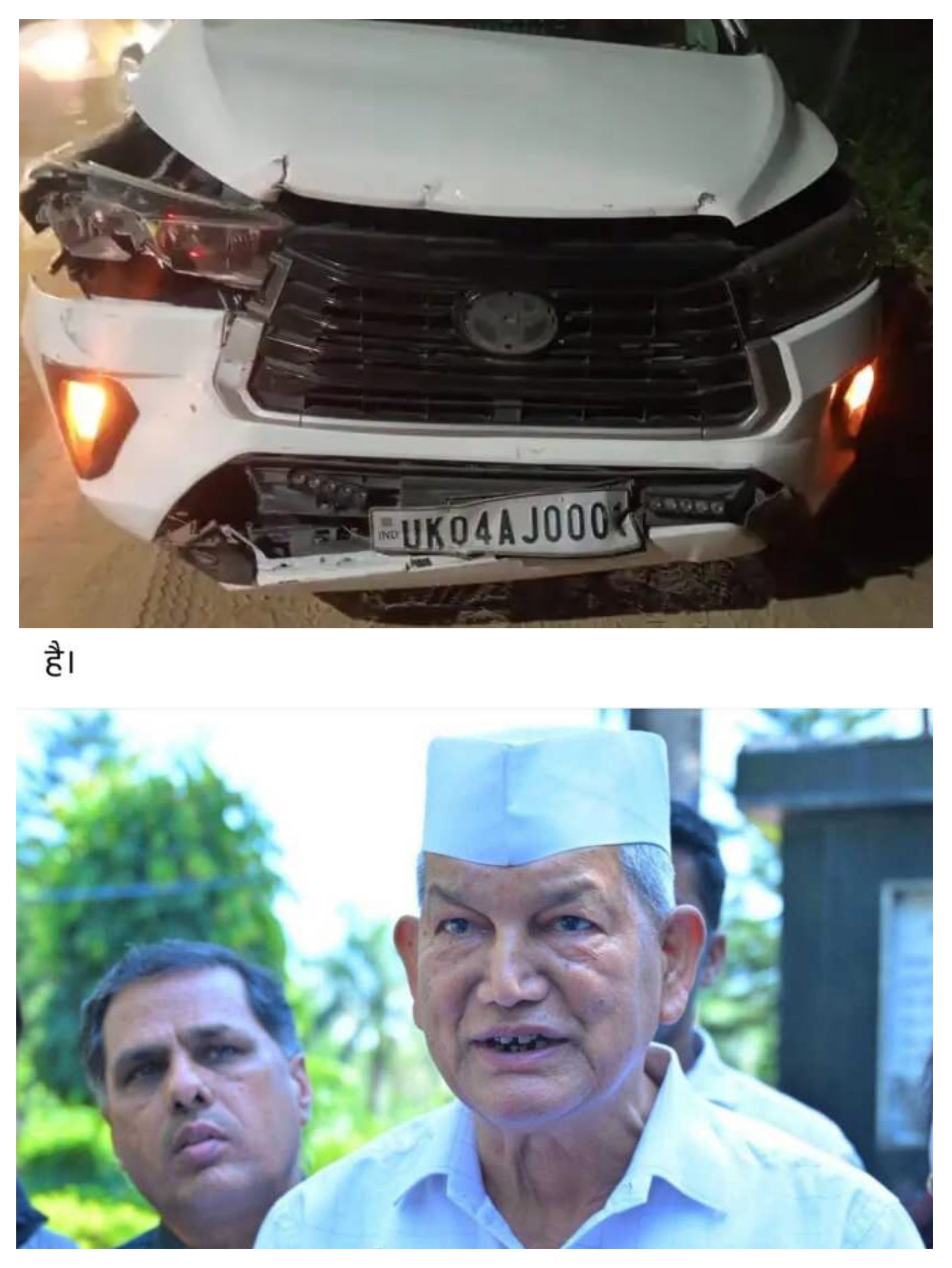 हरीश रावत ने सोशल मीडिया पर हादसे की जानकारी साझा करते हुए कहा, “मैं पूरी तरह से ठीक हूं, चिंता की कोई बात नहीं है। गाड़ी को जरूर नुकसान हुआ है, लेकिन मैं पूरी तरह स्वस्थ हूं।”