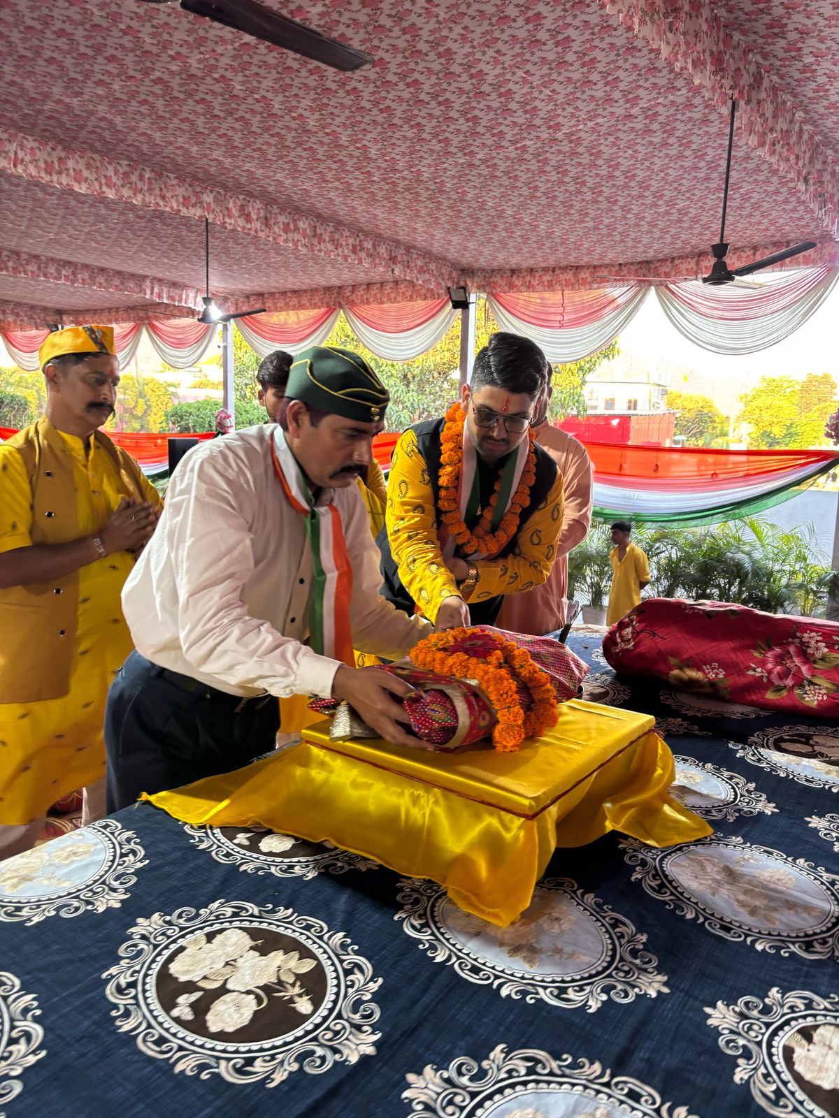 इस मौके पर सुनील उनियाल “गामा” जी पुर्व महापौर , देहरादून , मधु भट्ट, राज्य मंत्री ( उपाध्यक्ष , उत्तराखंड सांस्कृतिक साहित्य एवं कला परिषद), उत्तराखंड सरकार, धर्मपाल मनवाल जी, शहीद नरपाल मनवाल जी के परिवार से ( सेना मेडल, कारगिल युद्ध) , दया शंकर मिश्रा जी, प्रांत विस्तारक, भारतीय शिक्षण मंडल, उत्तराखंड प्रांत जी , पुष्पा बड़थवाल जी, निदेशक, गढ़वाल मंडल विकास निगम , मा० महानगर संघचालक, आरएसएस, देहरादून आदि जी की गरीनामयी उपस्थिति रही, इस मौके पर बाल व्यास व एनबीएफ के संस्थापक व राष्ट्रीय अध्यक्ष डा० अनिरुद्ध उनियाल जी ने कहा कि यह कथा भारत माँ के सुरवीरो के शौर्य और पराक्रम को समर्पित है और इस तिरंगा कलश यात्रा के माध्यम से समाज राष्ट्र कल्याण के लिए जागरूक हो यही लक्ष्य है। यह कथा एबीपीएसएसपी उत्तराखंड , जिला सैनिक कल्याण बोर्ड देहरादून, व बीएसएम उत्तराखंड प्रांत के संयुक्त तत्वावधान में आयोजित की गई,इस मौके पर एनबीएफ के ट्रस्टी दुर्गा प्रसाद उनियाल, प्रेमा उनियाल, खेमराज उनियाल, अजय उनियाल, सिमरन कौर व अन्य कई गणमान्य लोग उपस्थित रहे ।