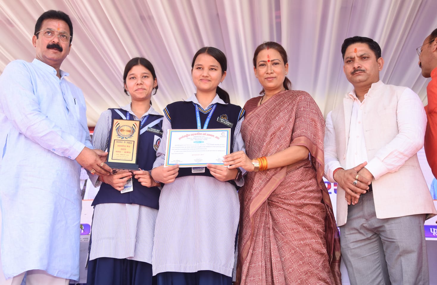 कार्यक्रम में विभिन्न प्रतियोगिताओं में उत्कृष्ट प्रदर्शन करने वाले बच्चों को सम्मानित किया गया। इस अवसर पर भाजपा जिलाध्यक्ष महेश नयाल, कार्यक्रम अध्यक्ष कैलाश शर्मा, ब्लॉक प्रमुख नीमा आर्या, जिला सहकारी बैंक लिमिटेड के पूर्व अध्यक्ष ललित लटवाल, विधायक प्रतिनिधि भुवन जोशी सहित कई अधिकारी और गणमान्य लोग मौजूद रहे।