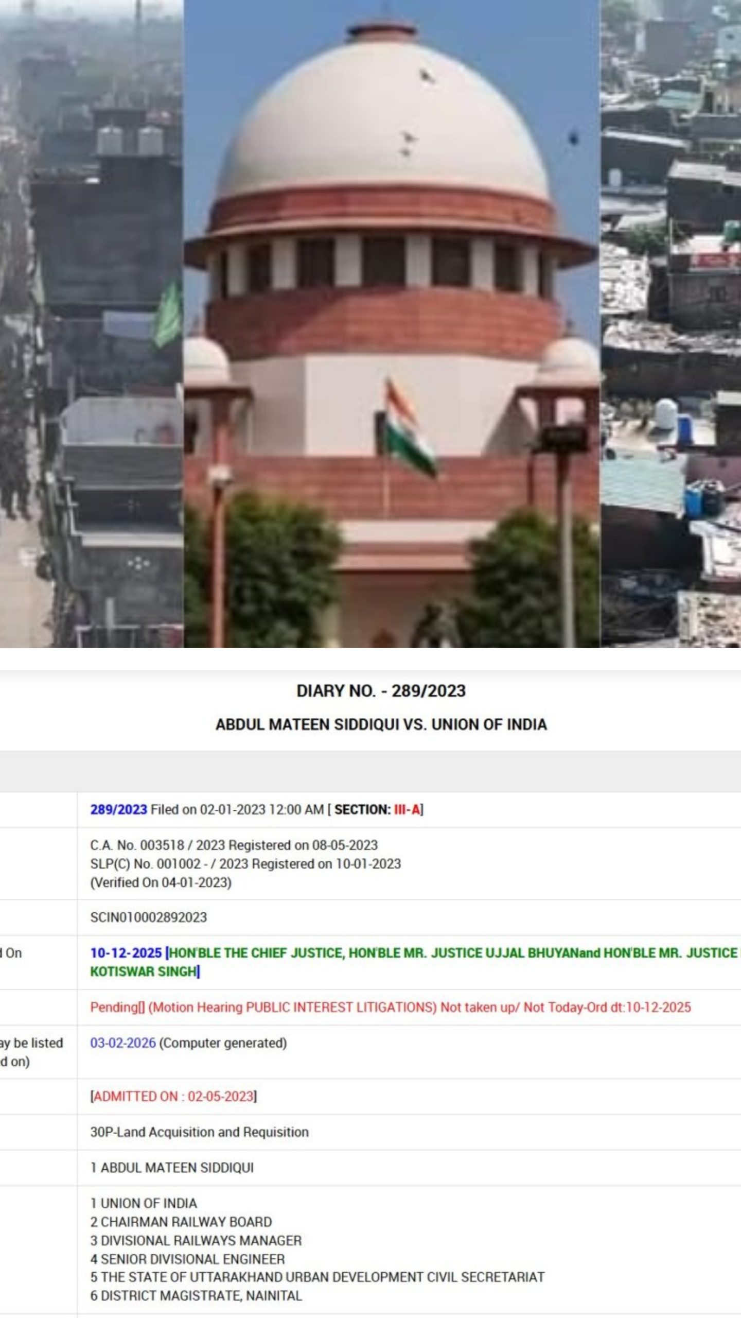 सुप्रीम कोर्ट की अधिकृत वेबसाइट के अनुसार अब इस प्रकरण की संभावित सुनवाई 3 फरवरी 2026 को दर्शाई गई है। इससे पहले यह मामला 16 दिसंबर 2025 को संभावित रूप से सूचीबद्ध था।