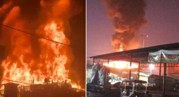 हादसे का वीडियो सोशल मीडिया पर तेजी से वायरल हो रहा है, जिसमें आग की भीषण लपटें साफ़ देखी जा सकती हैं।