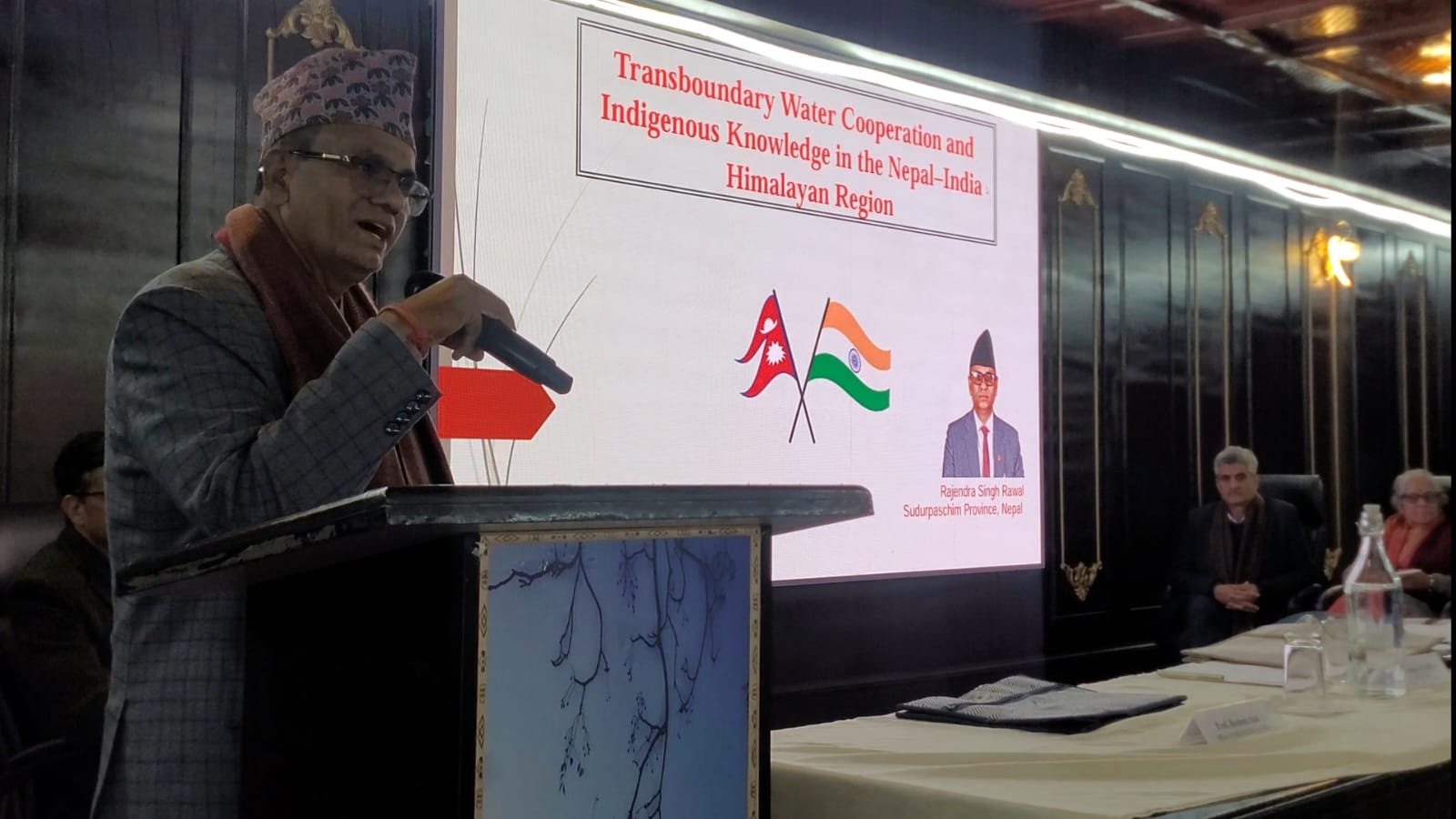 नैपाल के सुदूरवर्ती पश्चिम प्रोविंस के पूर्व मुख्यमंत्री राजेन्द्र सिंह रावल ने जल संरक्षण के पारंपरिक तरीकों के बारे में बताया।
