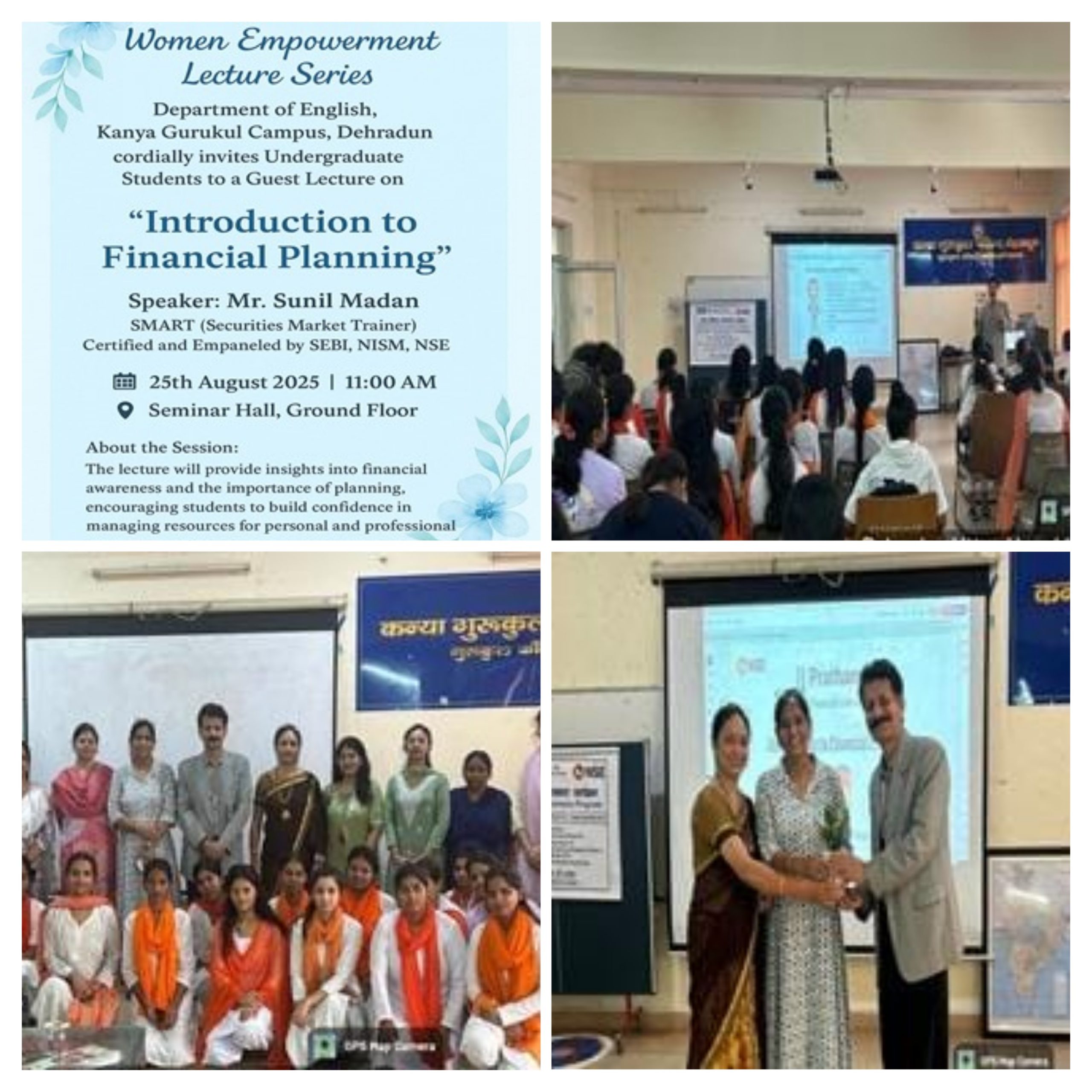 देहरादून— देहरादून स्थित कन्या गुरुकुल परिसर के अंग्रेजी विभाग ने एनएसई (नेशनल स्टॉक एक्सचेंज) के सहयोग से “वित्तीय नियोजन का परिचय” विषय पर एक अत्यंत आकर्षक और व्यावहारिक व्याख्यान का आयोजन किया।
