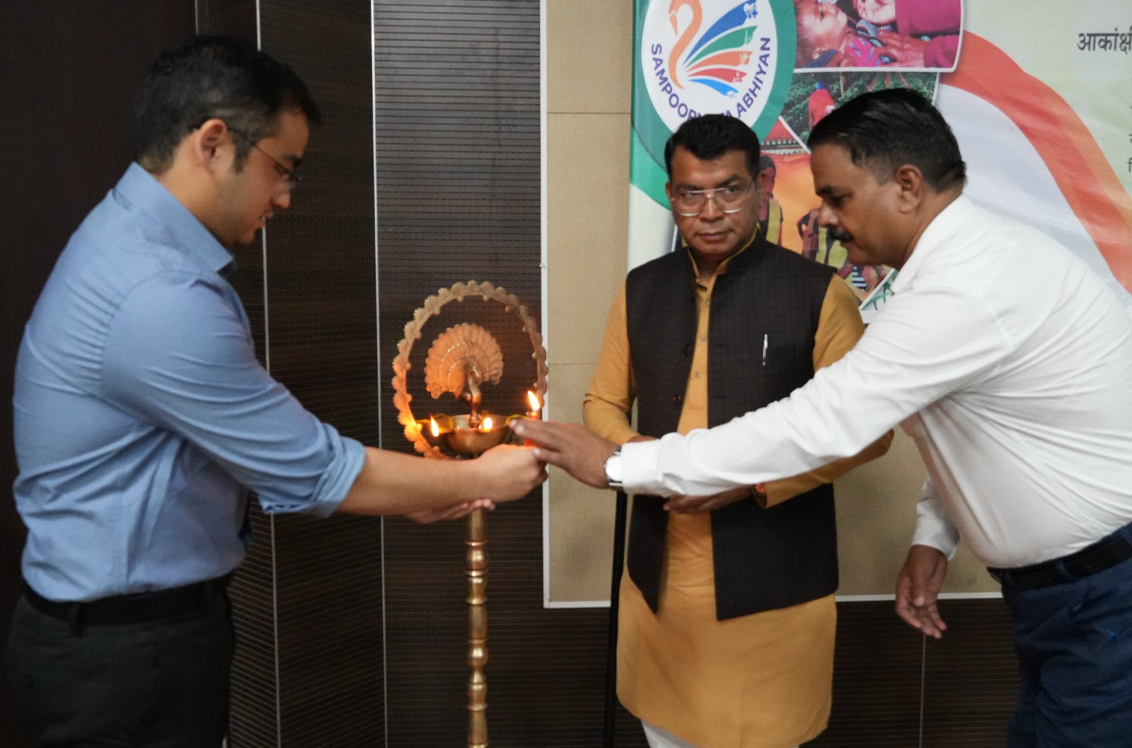 रूद्रपुरभारत सरकार द्वारा चिन्हित आकांक्षी जनपद व आकांक्षी विकास खण्ड कार्यक्रम के अन्तर्गत उत्कृष्ट कार्य करने वाले विभागीय अधिकारियों को सम्मनित करने हेतु सम्पूर्णता अभियान सम्मान समारोह जिला सभागार में आयोजित हुआ। बतौर मुख्य अतिथि विद्यायक शिव अरोरा ने दीप प्रज्वलित कर कार्यक्रम का शुभारम्भ किया। कार्यक्रम में नीति आयोग द्वारा निर्धारित संकेतांकों में शतप्रतिशत उपलब्धि हासिल करने पर मुख्य कृषि अधिकारी डॉ0 अभय सक्सेना, मुख्य उद्यान अधिकारी प्रभाकर सिंह, खण्ड विकास अधिकारी गदरपुर आतिया परवेज, खण्ड शिक्षा अधिकारी गदरपुर सावेज आलम, जीआईएस विशेषज्ञ तंसीर आलम व आशीष भट्नागर को मेडल व प्रशस्ति पत्र देकर सम्मानित किया गया।