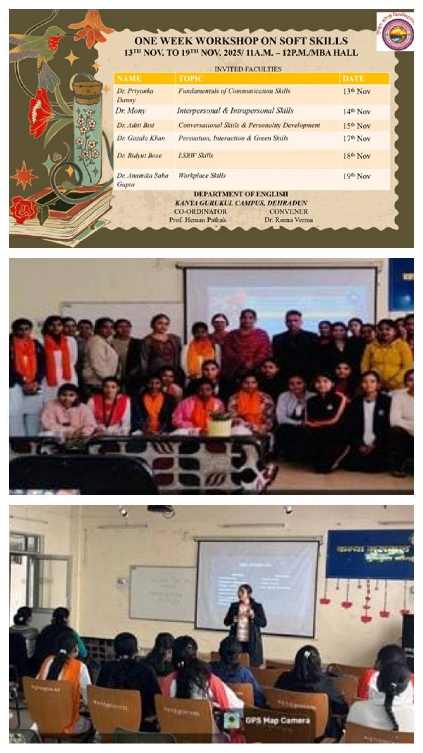 देहरादून—  कन्या गुरुकुल कैंपस, देहरादून के अंग्रेजी विभाग द्वारा 13 नवंबर से 19 नवंबर 2025 तक आयोजित एक सप्ताह की सॉफ्ट स्किल्स कार्यशाला का आज सफलतापूर्वक समापन हो गया।