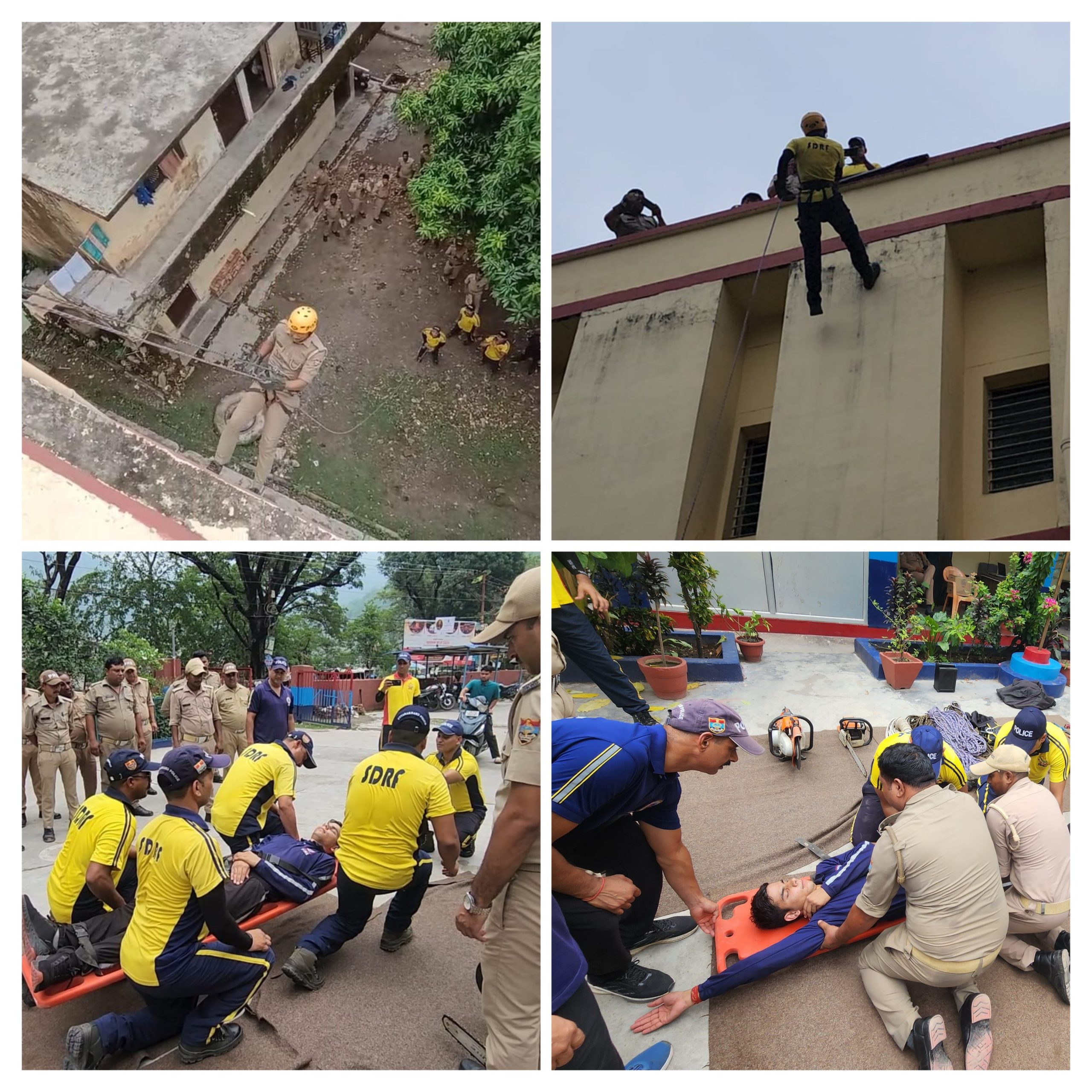 जहां पर एसडीआरएफ की टीम के द्वारा पुलिस जवानों, होमगार्ड तथा पीआरडी जवानों तथा फायर सर्विस की टीम को आपदा प्रशिक्षण दिया गया है ,