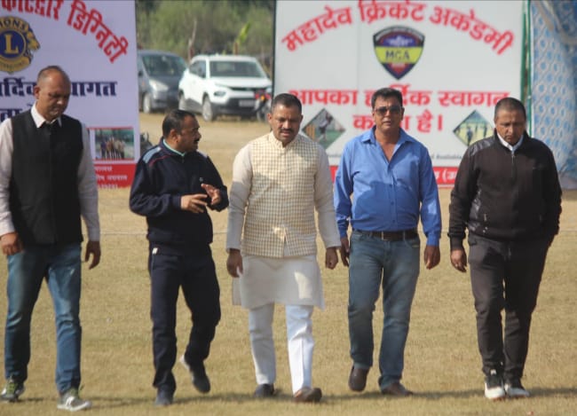 कोटद्वार- कोटद्वार महादेव क्रिकेट ग्राउंड में क्रिकेट महासंग्राम कोटद्वार वेटरन प्रीमियर लीग (KVPL 2023) का पहला सेमीफाइनल शिबू नगर नाइट राइडर्स और सिद्धबली क्रिकेट क्लब के मध्य खेला गया आज मुकाबला का उद्घाटन भारतीय जनता पार्टी के जिला अध्यक्ष श्री बीरेंद्र सिंह रावत जी द्वारा किया गया आयोजन कमेटी सदस्यों द्वारा माननीय जिलाअध्यक्ष जी को स्मृति चिन्ह देकर सम्मानित किया आज शिबू नगर नाइट राइडर्स ने टॉस जीतकर पहले गेंदबाजी करने का फैसला लिया।