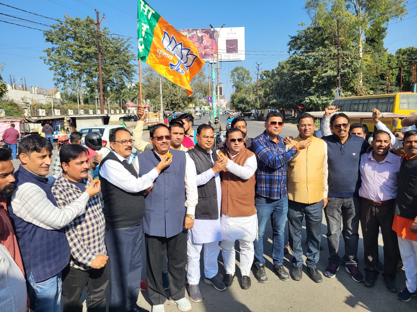 जिसका नतीजा आज तीन राज्यों में बहुमत हासिल कर भाजपा की सरकार बनेगी इस अवसर पर भाजपा किसान मोर्चा के पूर्व प्रदेश अध्यक्ष अनिल चौहान निवर्तमान मेयर रामपाल सिंह, पूर्व भाजपा जिला अध्यक्ष उत्तम दत्ता, भारत भूषण चुघ,पार्षद सुशील चौहान भुवन गुप्ता, शिवकुमार शिबू, डॉ राकेश सिंह, दीपक राणा, संजय कुमार, ललित बिष्ट, मदन शर्मा, सतपाल गंगवा,राजेश पांडे, अजय चौहान, उदयवीर, संतोष विजय, अवधेश मिश्रा कैलाश रूप, किशोर कपिल भोला साहनी अमित गोड सनी पासवान, महेश कोली गोविंद साहनी, संजीव गुप्ता सुरेंद्र गुप्ता विकास बंसल, सुरेंद्र गुप्ता, मुकेश राजोरिया, सोनू मुल्तानी, राजेश कुमार, बंटी राजोरिया आदि कार्यकर्ता उपस्थित रहे ।।