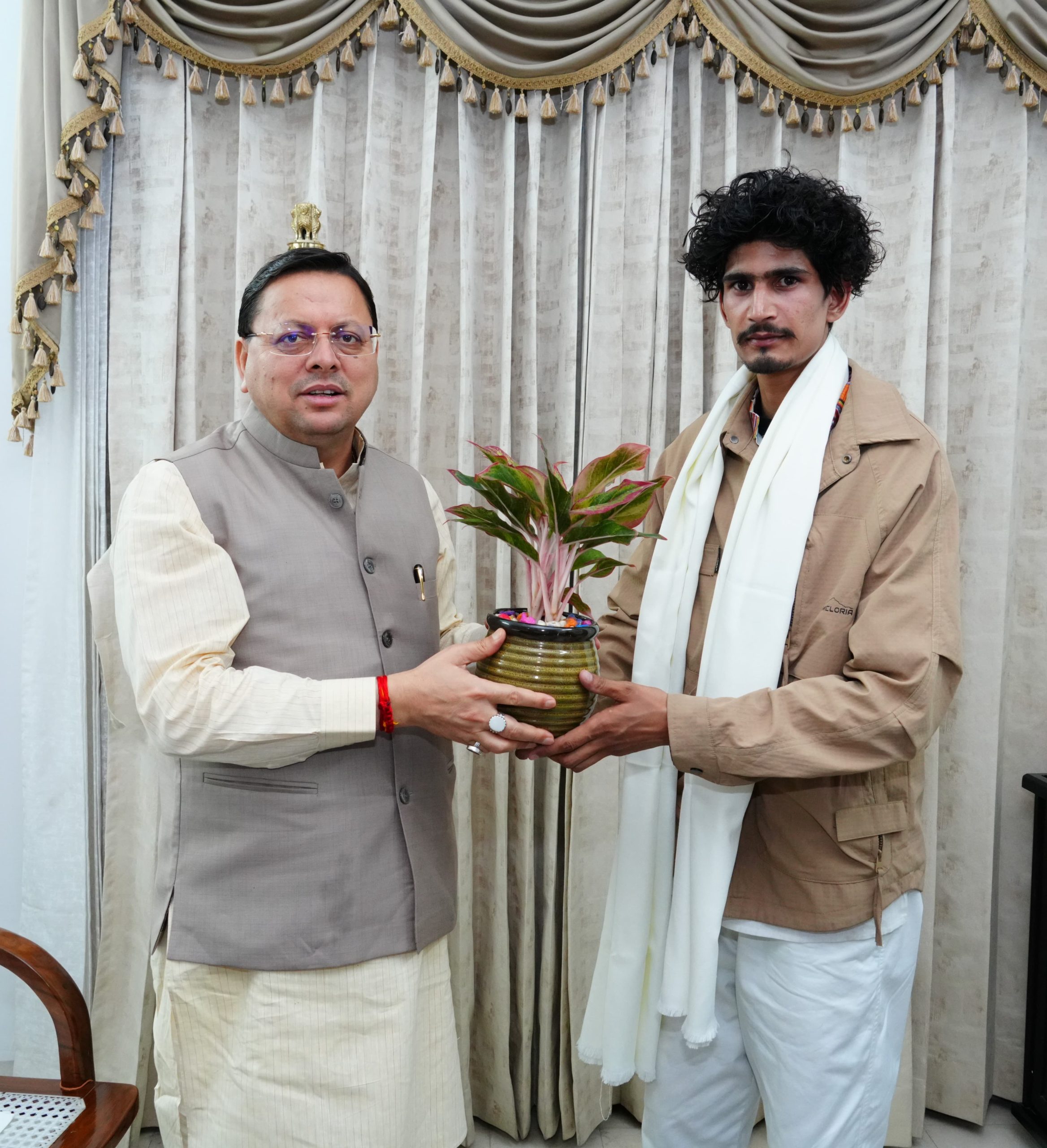 देहरादून— मुख्यमंत्री पुष्कर सिंह धामी ने माउंट एवरेस्ट को विजय करने वाले युवा पर्वतारोही रोहित भट्ट को आज मुख्यमंत्री आवास में सम्मानित किया |