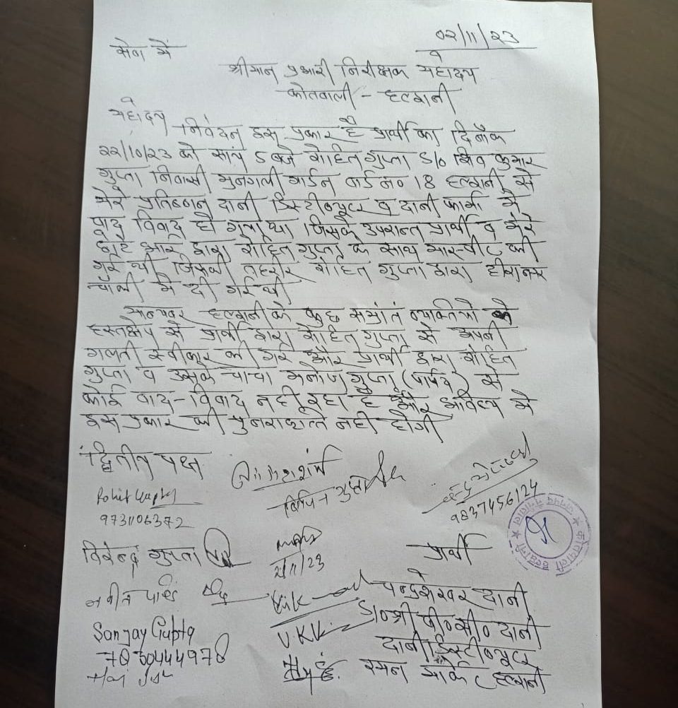 मामला प्रभारी निरीक्षक श्री हरेंद्र चौधरी के संज्ञान आने के बाद आरोपी चंद्रशेखर दानी को कोतवाली बुलाया गया वहा पर चंद्रशेखर दानी द्वारा अपनी गलती स्वीकार की गई हल्द्वानी के कुछ संभ्रांत लोगो की मध्यस्ता के चलते आरोपी चंद्रशेखर दानी द्वारा लिखित में प्रभारी निरीक्षक को माफीनामा दिया