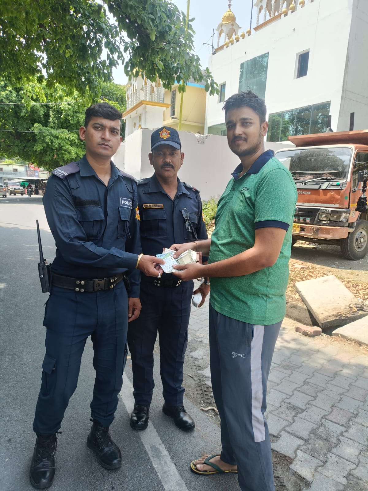 सीपीयू टीम द्वारा आशीष के ड्राइविंग लाइसेंस के नंबर के माध्यम से चालान मशीन द्वारा उसका मोबाइल नंबर निकालकर संपर्क स्थापित किया और जवान का पर्स वापस लौटाया गया।