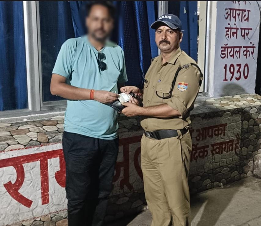ऋषिकेश— चौकी रामझूला पर नियुक्त मुख्य आरक्षी सुवर्धन को गश्त के दौरान रामझूला बाजार में एक पर्स मिला। जिसमें ₹16,400/- नगद, एसबीआई एटीएम कार्ड, कंपनी का पीएफ कार्ड, पैन कार्ड एवं अन्य महत्वपूर्ण दस्तावेज मौजूद थे, जो पुष्कर सिंह नाम के व्यक्ति के थे।