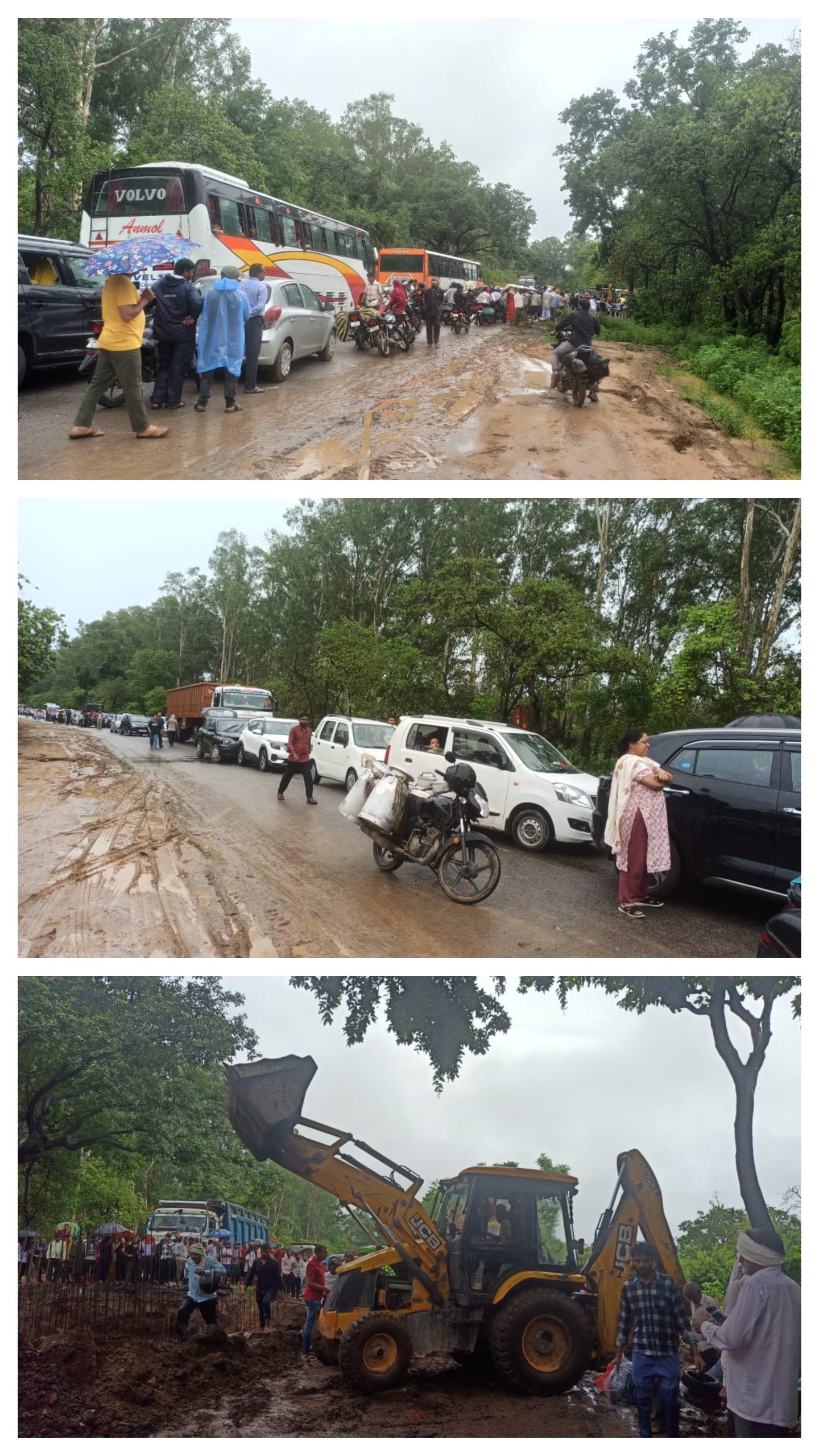 कोटद्वार-नजीबाबाद के बीच फोरलेन हाईवे पर निर्माण के दौरान पुलिया क्षेत्र में जमीन धंस गई। इस दौरान यहां वाहन फंस गए और यातायात बंद हो गया। जेसीबी से रास्ता खोलने के लिए प्रयास किए जा रहे हैं। कोटद्वार में वाहनों की लंबी कतार लगी है।