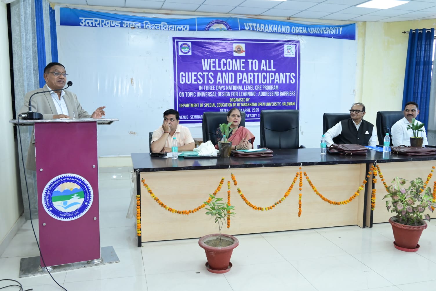 कार्यक्रम की अध्यक्षता कर रहे हैं उत्तराखंड मुक्त विश्वविद्यालय के कुलपति प्रोफेसर ओम प्रकाश सिंह नेगी जी द्वारा अपने उद्बोधन में दिव्यांगजनों के लिए विशेष शिक्षकों के लिए इस तरह की कार्यशालाओं के आयोजनों की सराहना की।