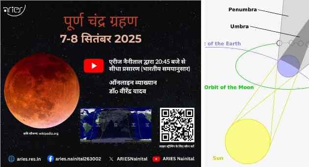 नैनीताल—-  उत्तराखण्ड में नैनीताल के अंतरिक्ष विज्ञान शोध संस्थान के अनुसार आज शनिवार रात पूर्ण चंद्र ग्रहण के कारण चंद्रमा का रंग लाल देखने को मिलेगा।