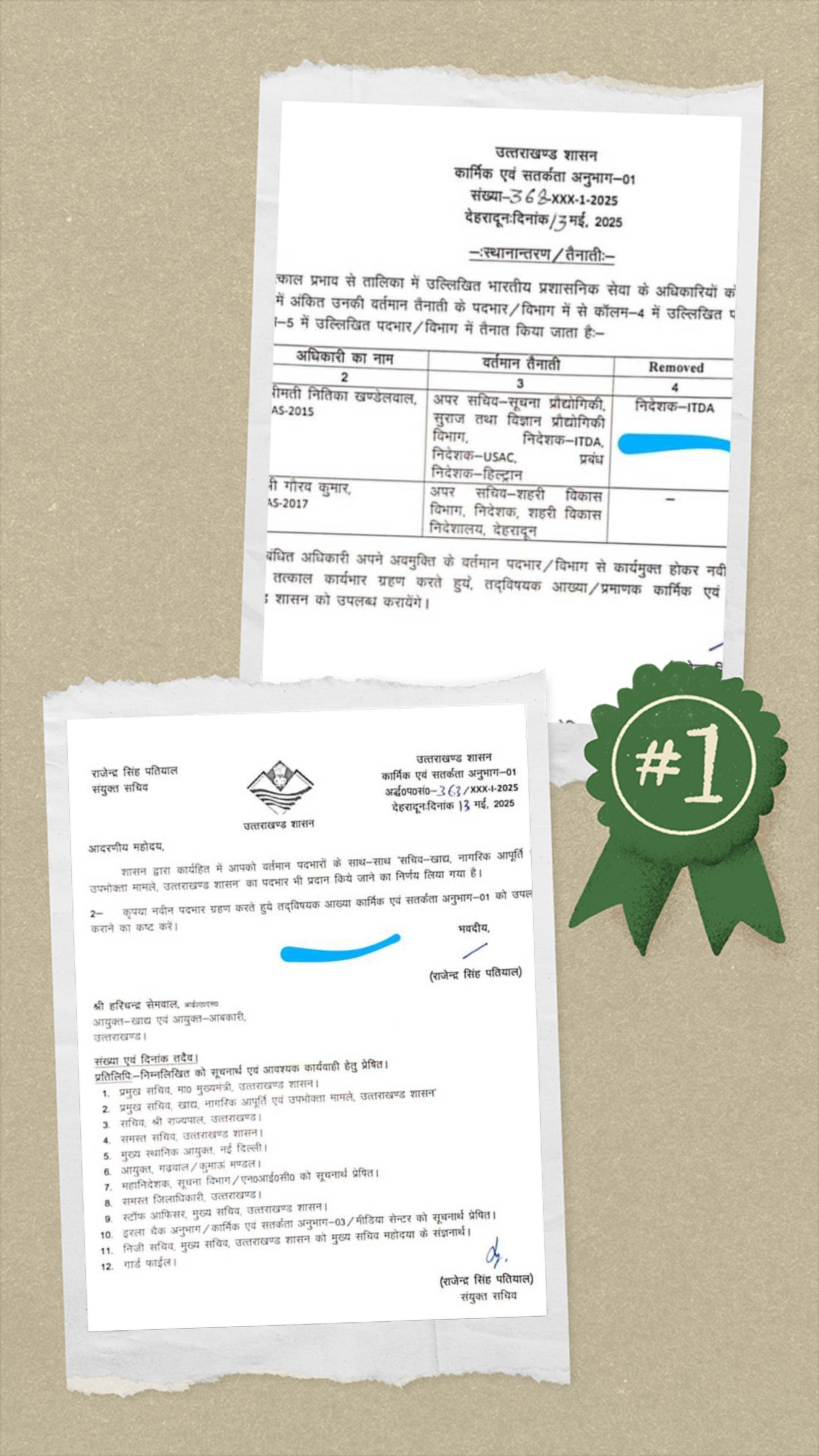 पहले से ही आबकारी विभाग का कार्यभार संभाल रहे हरिचंद्र सेमवाल को अब खाद्य, नागरिक आपूर्ति एवं उपभोक्ता मामलों का अतिरिक्त प्रभार दिया गया है।